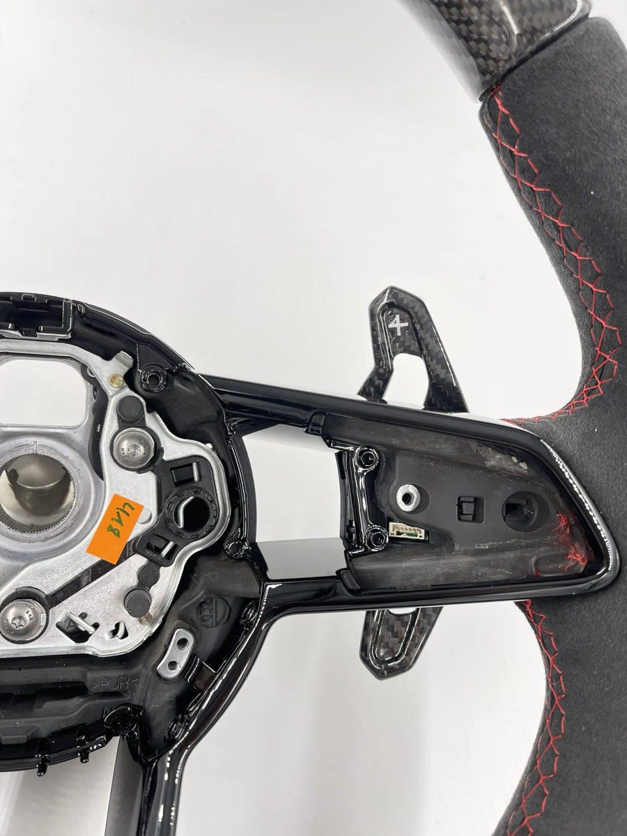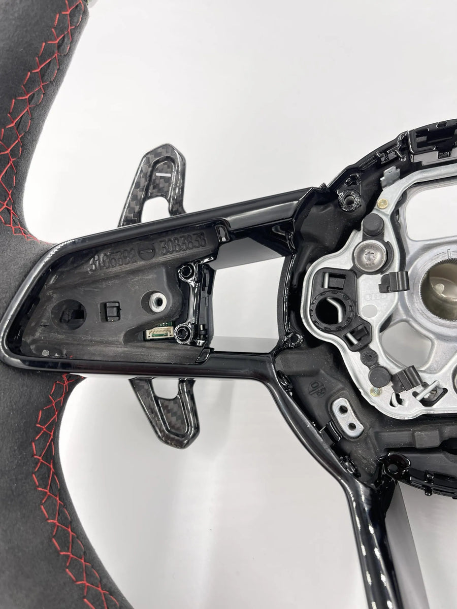 The paddles are made of high-quality carbon fiber in matte black and are not glued on , but directly replace the original shift paddles. This way, full functionality is retained and you get a high-quality solution in OEM style, both visually and haptically.