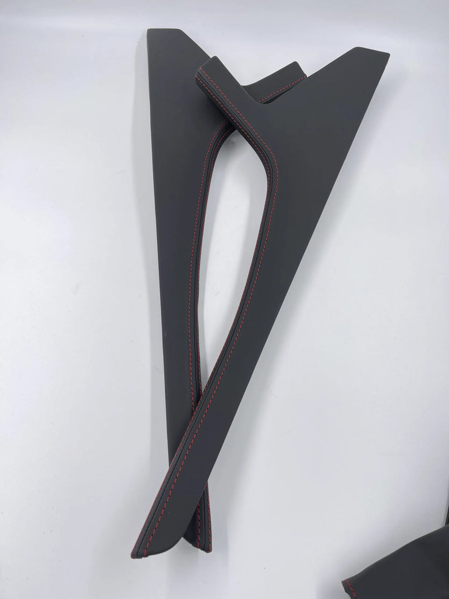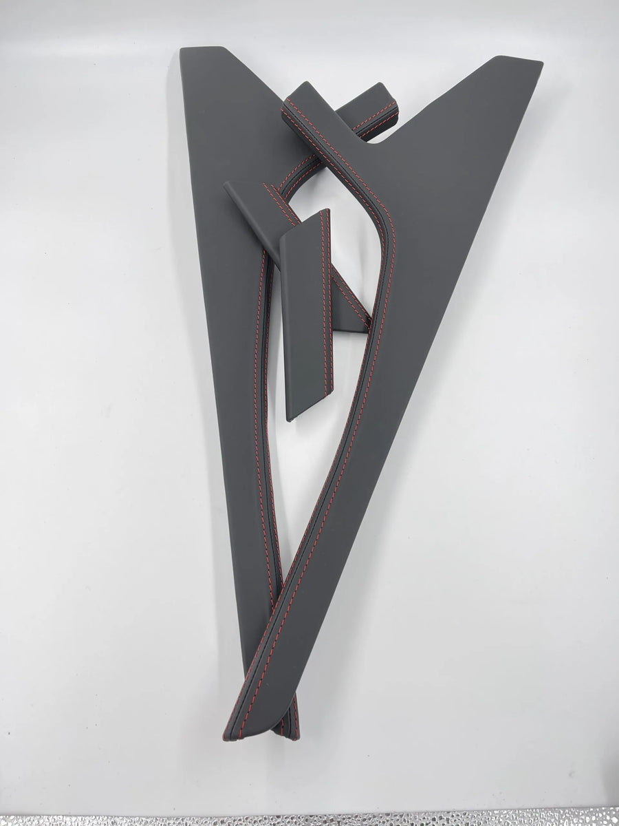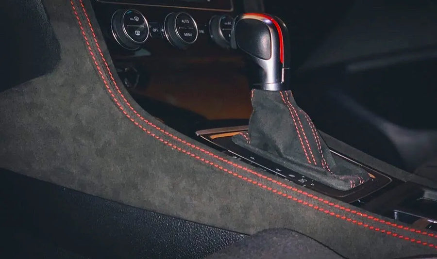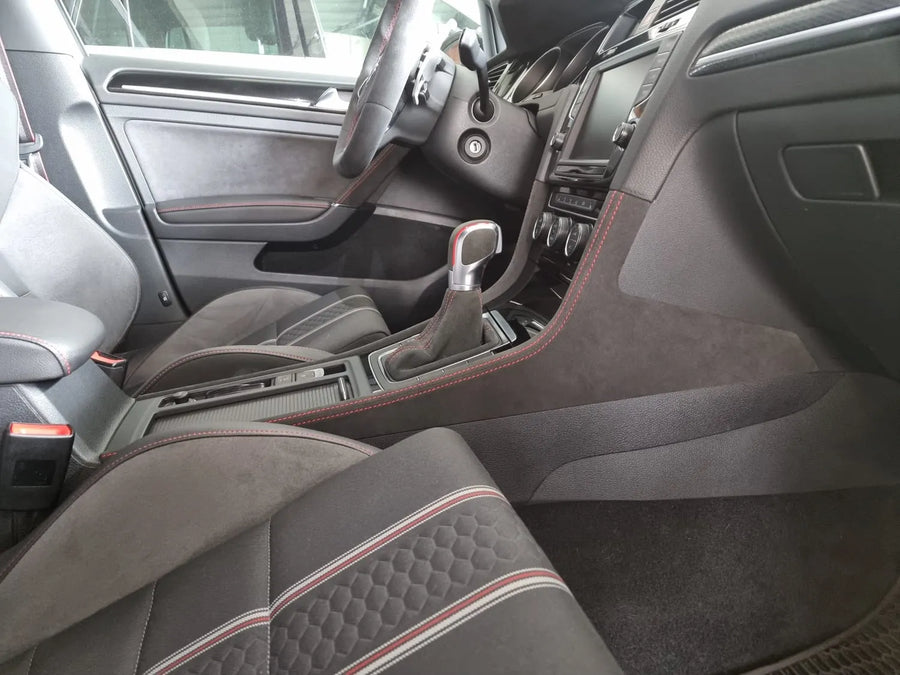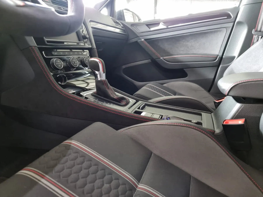 Give your Golf 7 interior a unique and high-quality look with our custom-made center console flanks. You can choose from various materials and stitching colors to match your vehicle's style.