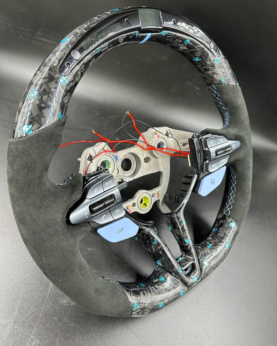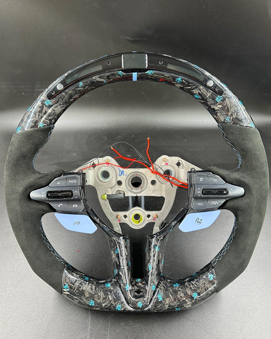 Hier kannst du ein original Hyundai i30N / i20N Lenkrad mit edlen Carbon-Elementen und integriertem Display bestellen. Das Lenkrad ist ergonomisch geformt und bietet dir ein sportliches Fahrerlebnis auf höchstem Niveau – mit voller Beibehaltung der originalen Lenkradheizung.